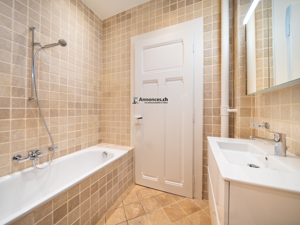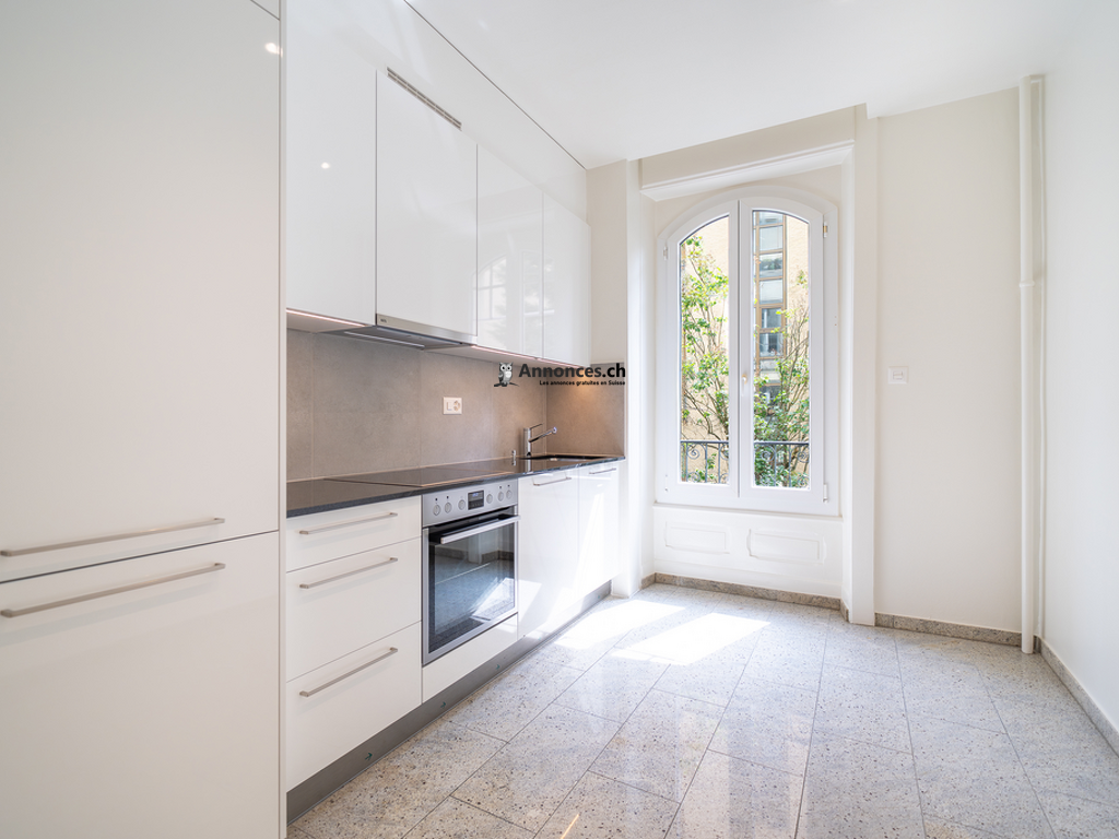 Sublime appartement de 4 pièces dans un joli quartier calme à 5 min du centre-ville, se compose comme suit : cuisine agencée, spacieux séjour, 2 chambres à coucher, bureau, salle-de-bains/WC, salle d'eau/WC, buanderie privée. Proche des transports publics, commerce, à 15 min de la gare.