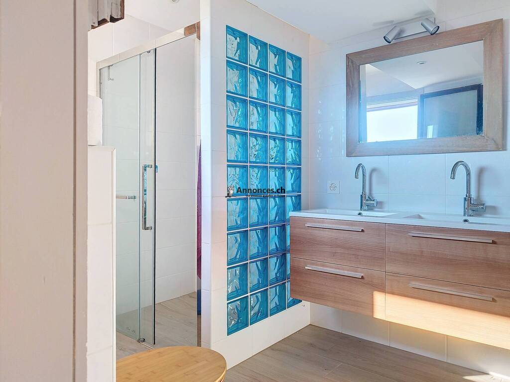 Cet espace propose trois chambres lumineuses, dont une belle suite avec salle de bains rénovée en 2021, comprenant une baignoire et une douche. Les deux autres chambres se partagent une salle de bains élégante, également rénovée, combinant baignoire et douche. La lumière naturelle sublime chaque pièce et crée une atmosphère apaisante.