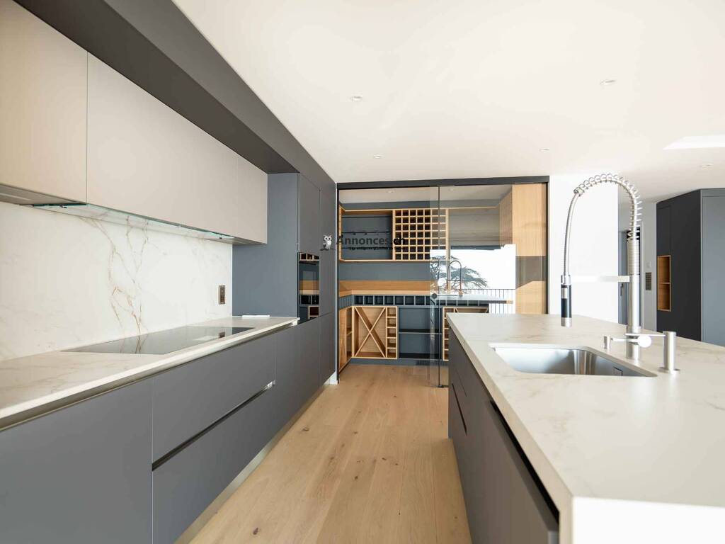 - Cuisine totalement agencée ouverte sur le séjour avec cave à vin intégrée