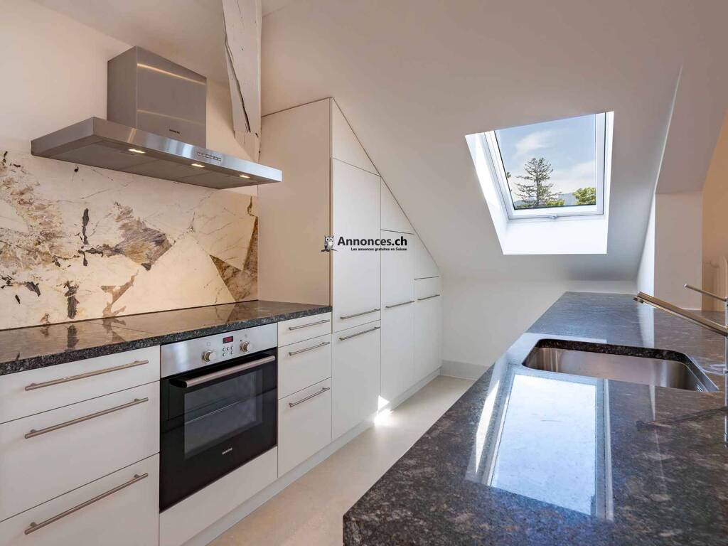 Dans une belle villa de Maître à 5 min. à pied du centre de Vevey datant de la fin du XVIIII ème siècle, érigée dans un parc arboré et ayant bénéficié d'une complète rénovation en 2017, superbe appartement de 3.5 pièces regroupant 130 m2 dans les combles, totalement rénové.