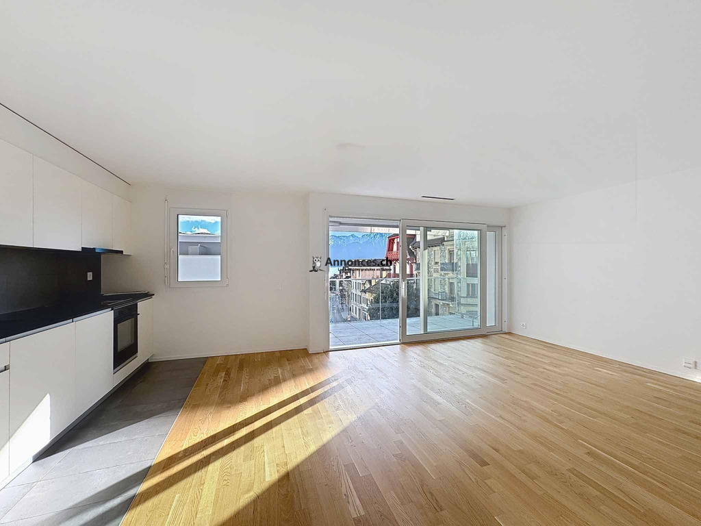 Dans un immeuble récent, construit en 2022 et répondant aux normes label Minergie, accessible aux personnes à mobilité réduite, très bel Appartement de 3.5 pièces, au 3ème étage, orienté Sud-Ouest regroupant 69 m2 int. ainsi qu'un grand balcon couvert de 11 m2 proposant une jolie échappée sur le Lac.