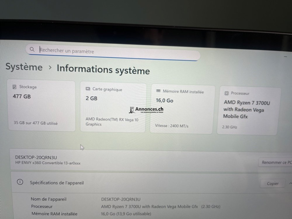Processeur : AMD Ryzen 7 3700U